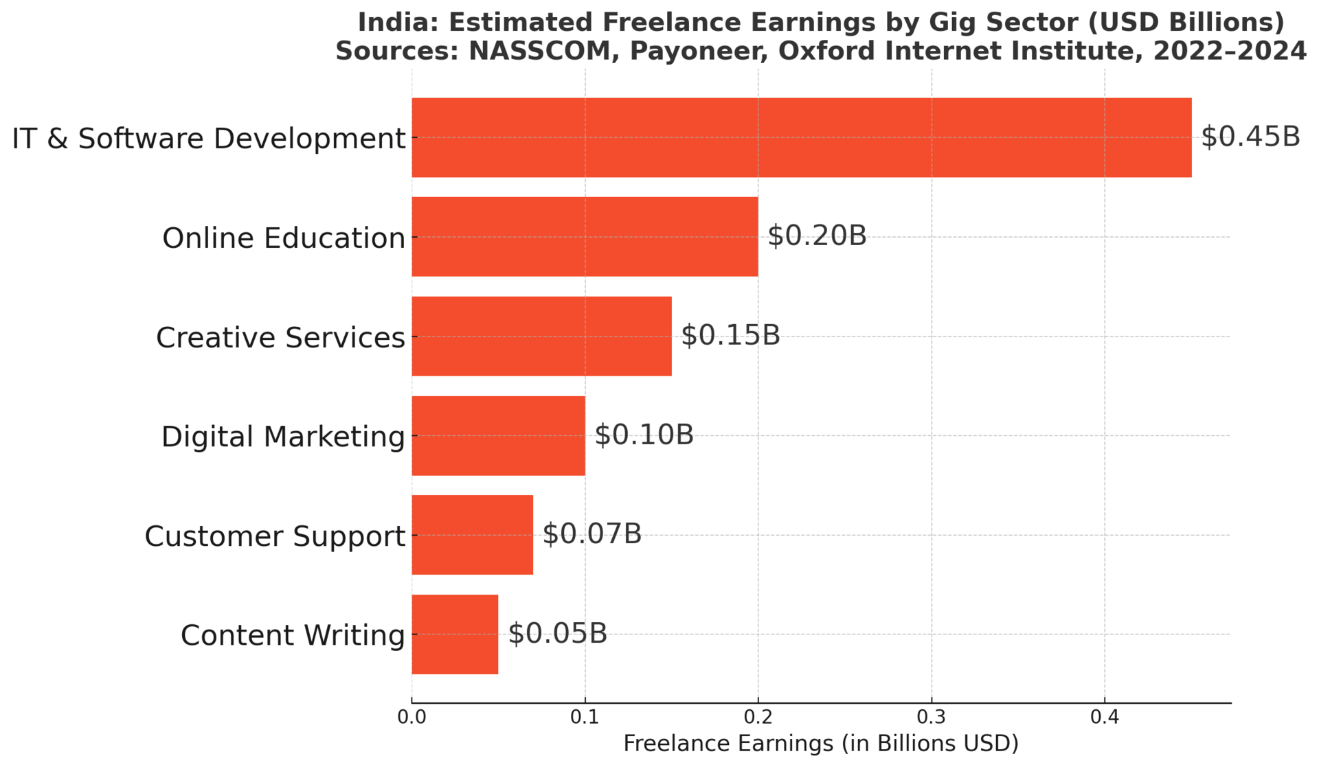 India’s gig economy spans everything from food delivery to software engineering. Its massive workforce supports both domestic platforms (Swiggy, Ola, Zomato) and global tech ecosystems.