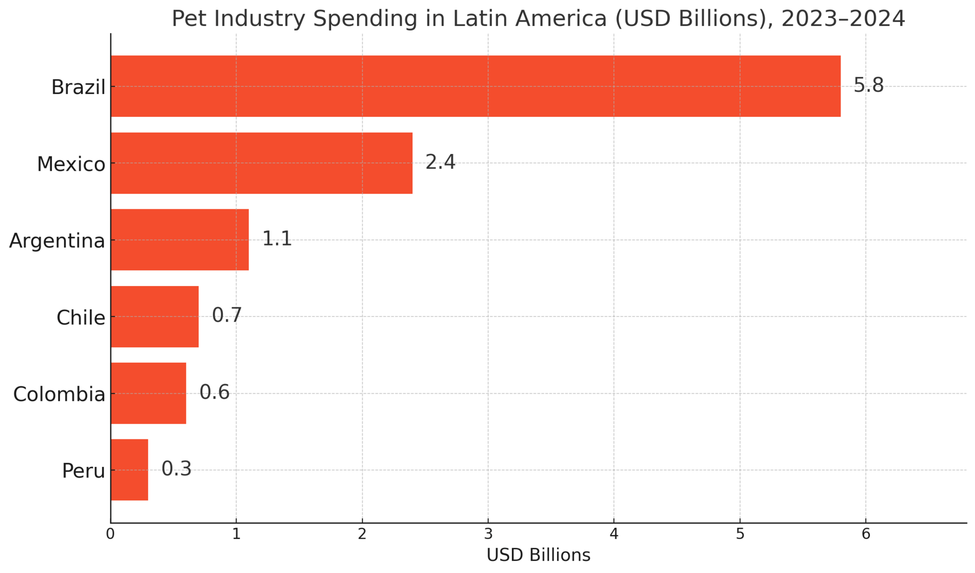 Brazilians adore their pets—and they’re spending big to show it. Brazil now ranks #2 globally in pet ownership and leads all of Latin America in pet-related spending. With over 149 million pets, including dogs, cats, birds, and exotic species, the country’s pet care market is worth over $10 billion and growing fast.