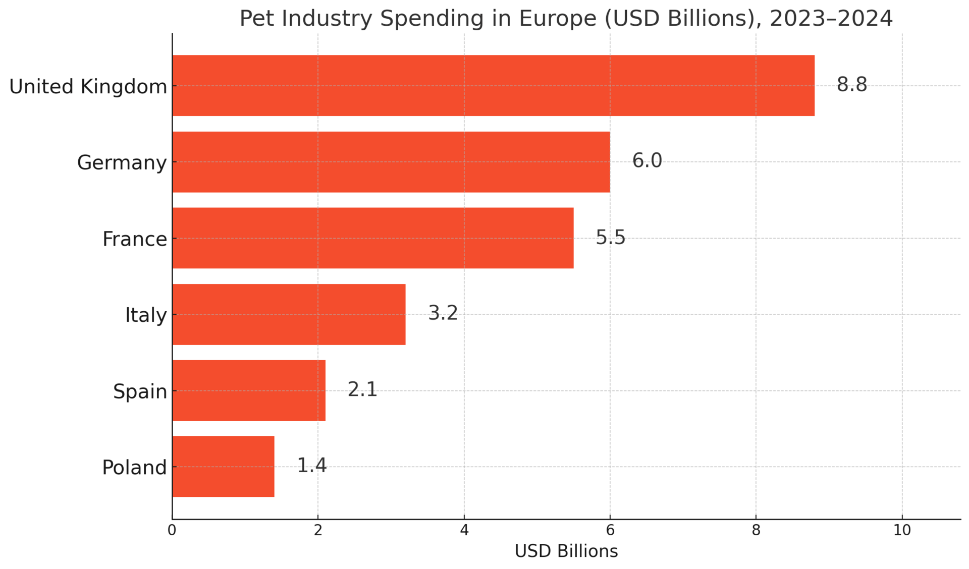 That hasn’t slowed down the market—it’s helped it mature. German pet owners spend over $6 billion annually, with an emphasis on quality, sustainability, and health. Organic food, zero-waste toys, and eco-conscious grooming services dominate the market.