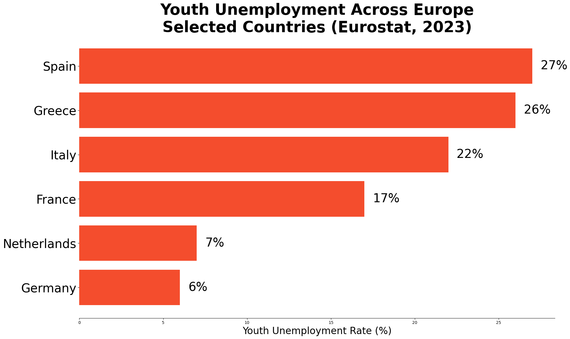🇪🇸 Spain and 🇮🇹 Italy struggle with youth unemployment rates often exceeding 20%, limiting income growth despite lower living costs.