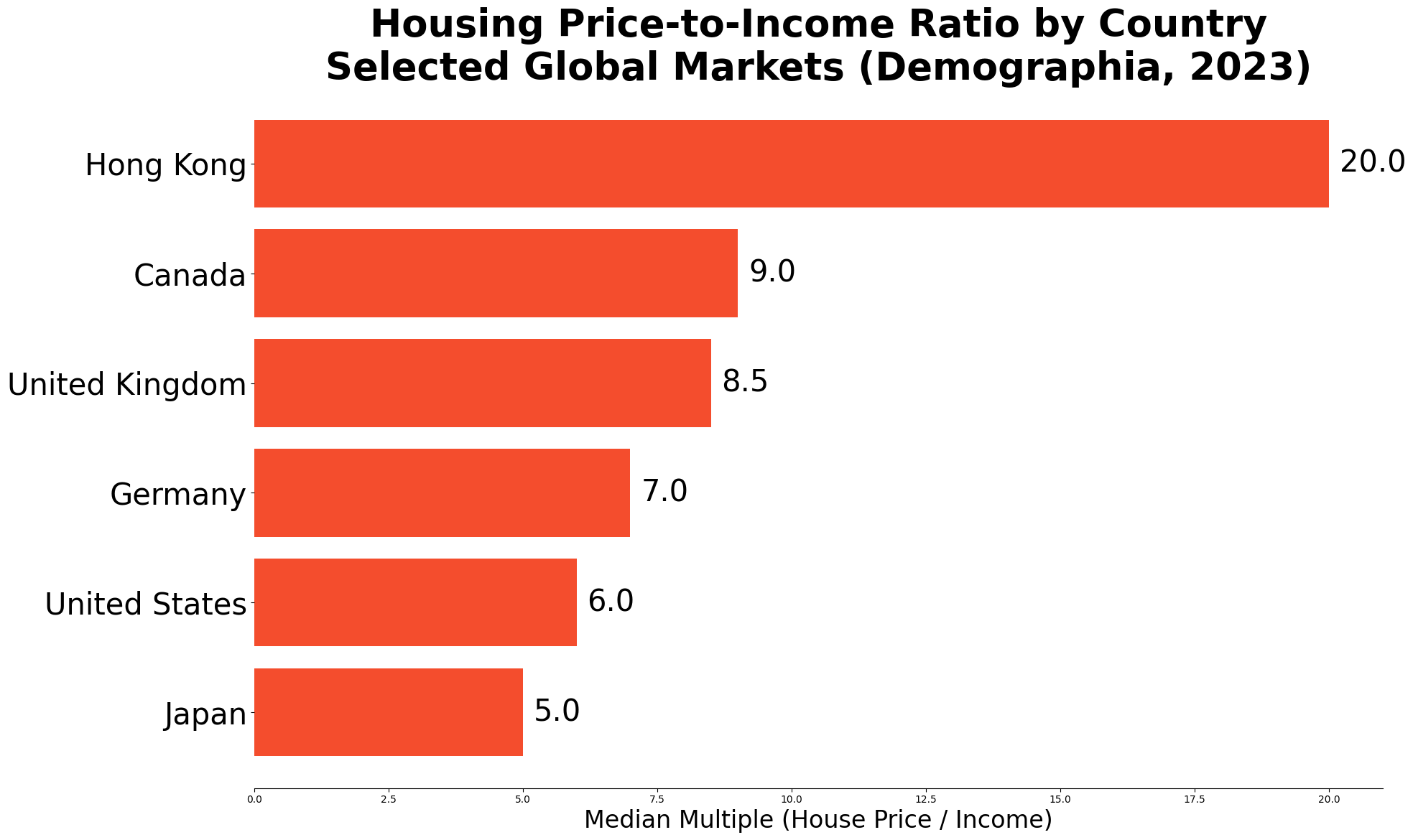 🇭🇰 Hong Kong remains one of the least affordable housing markets on Earth. Median home prices exceed 20 times median income, effectively placing ownership out of reach for most young residents.