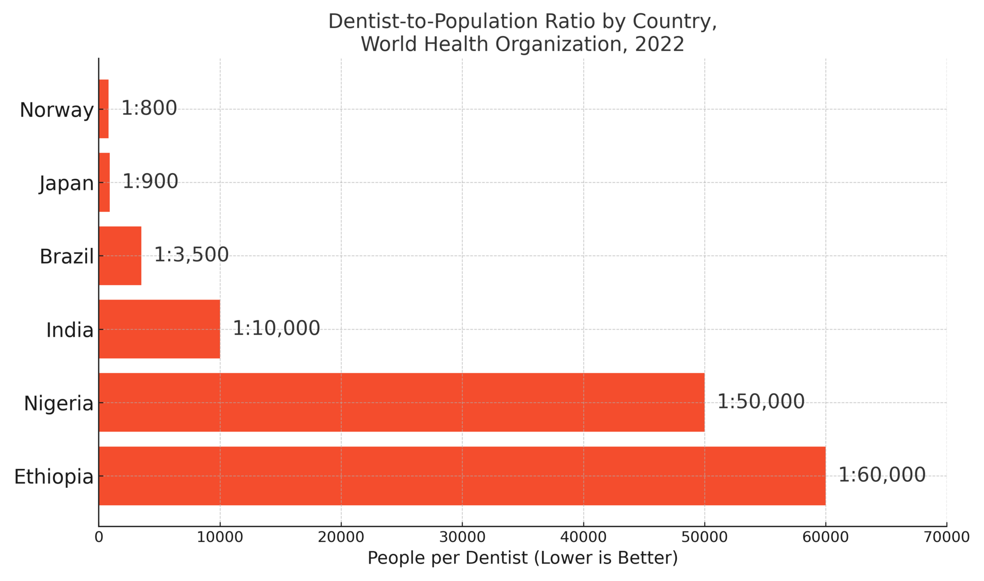 🇧🇩 Bangladesh suffers a similar shortage, with basic dental care often limited to extractions by untrained practitioners.