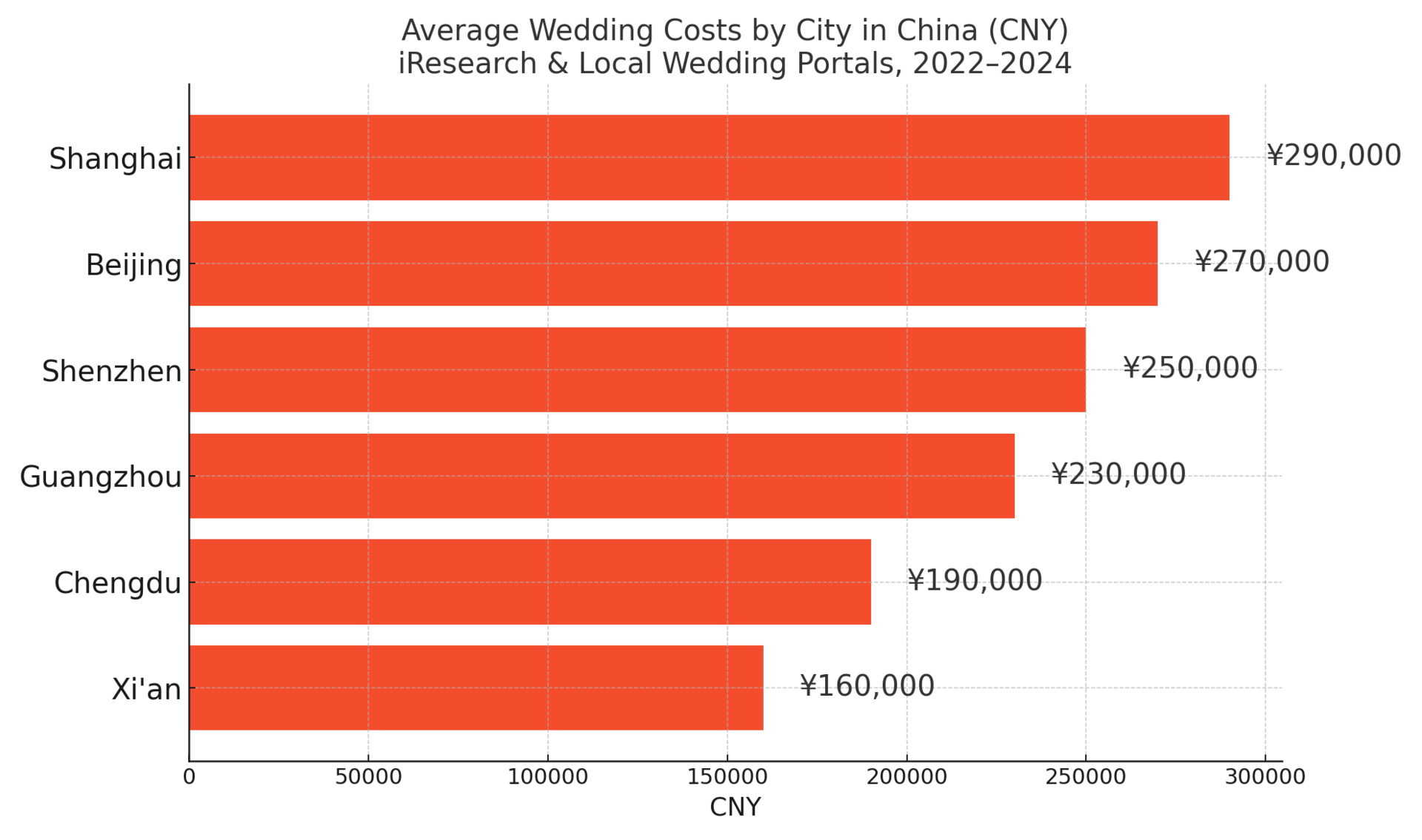 Modern Chinese weddings reflect rising prosperity and social status. Average costs have jumped to ¥200,000 (~$27,000)—a tenfold increase over the past 20 years.