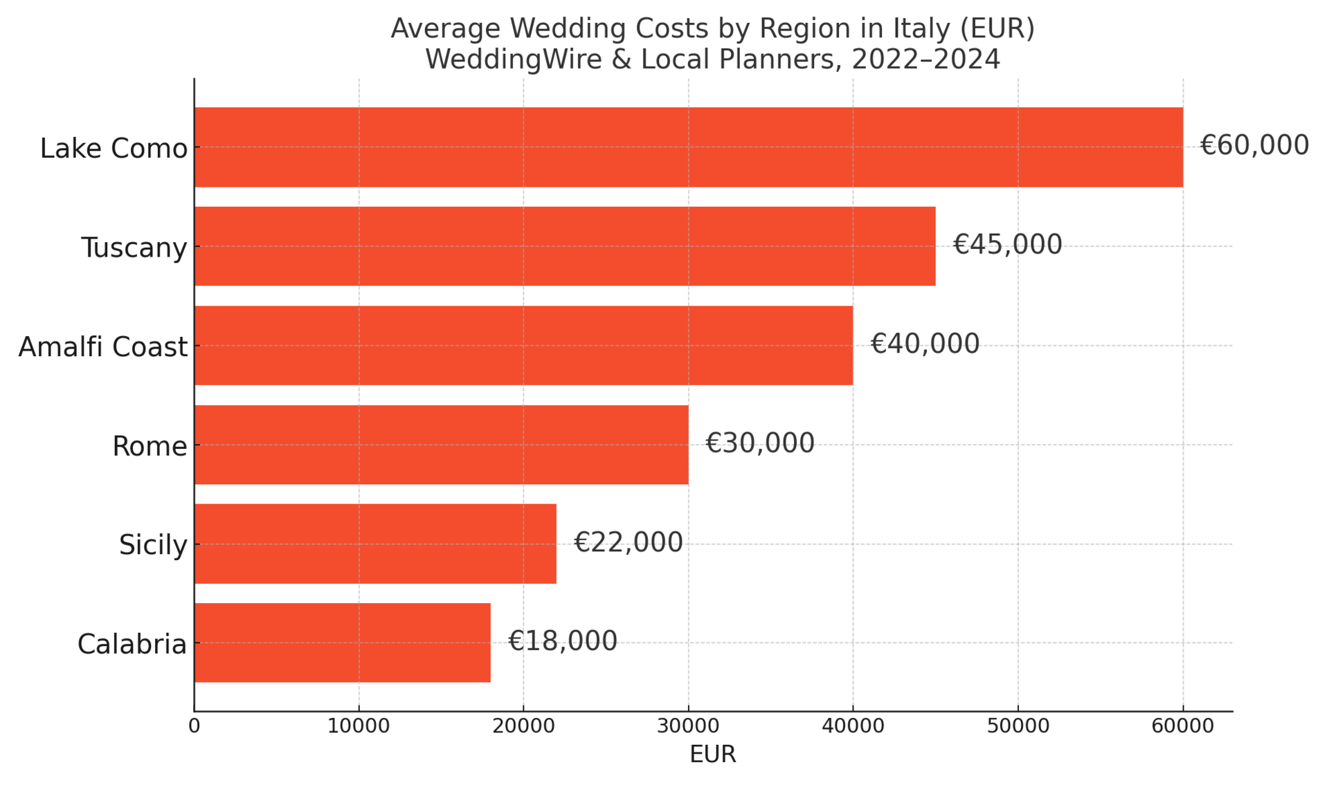 Italy blends timeless beauty with luxurious celebration. While the average wedding costs €25,000, ceremonies in dream locations like Tuscany or Lake Como often cross €50,000.