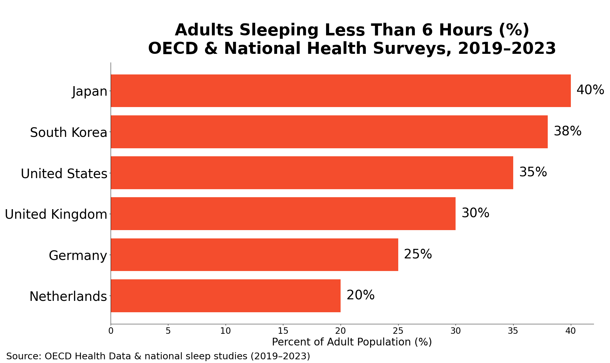 🇯🇵 Japan consistently ranks among the shortest sleepers globally, with many adults averaging closer to 6 hours.