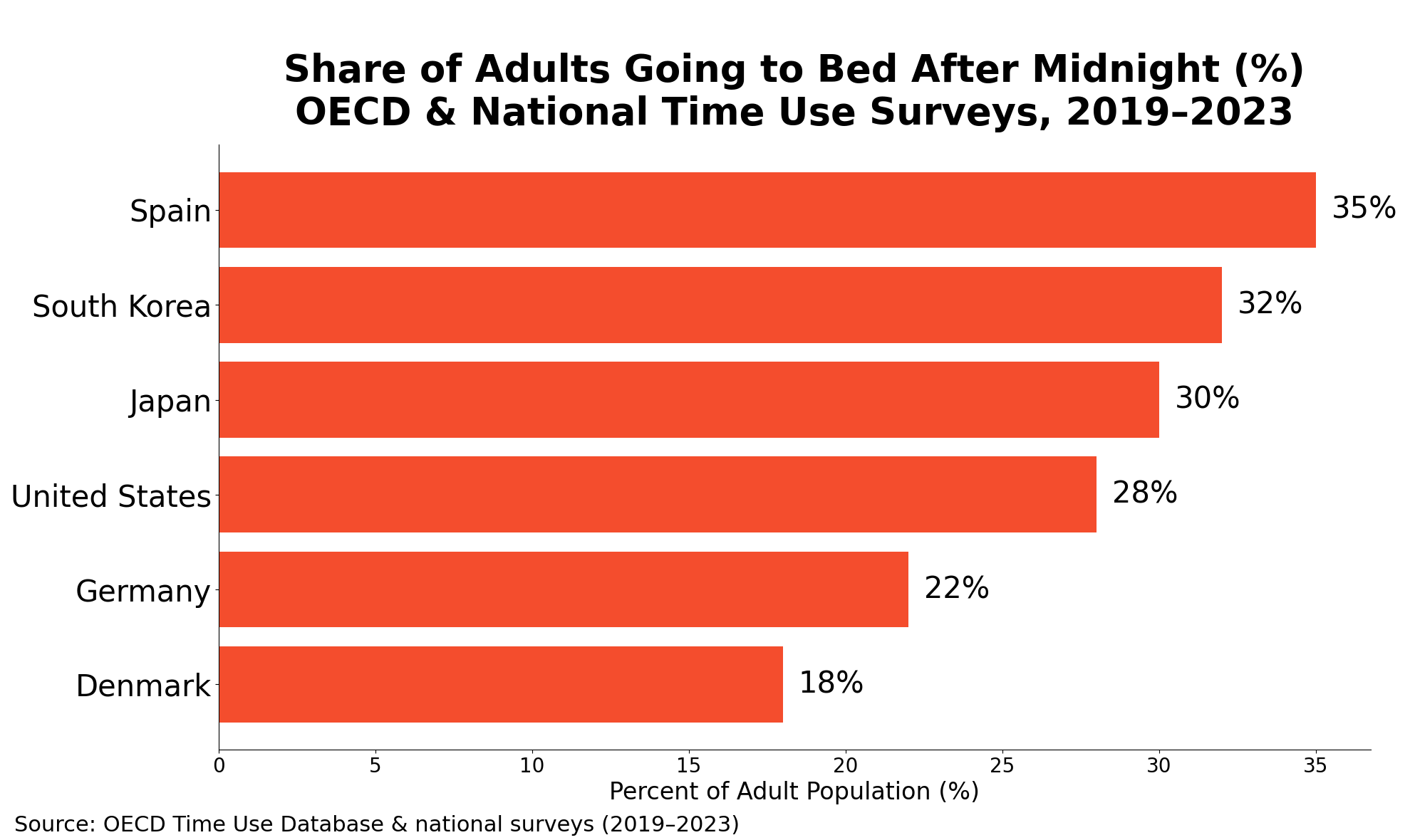 🇪🇸 Spain famously runs late—dinners often start after 9 PM, with bedtimes following well past midnight.