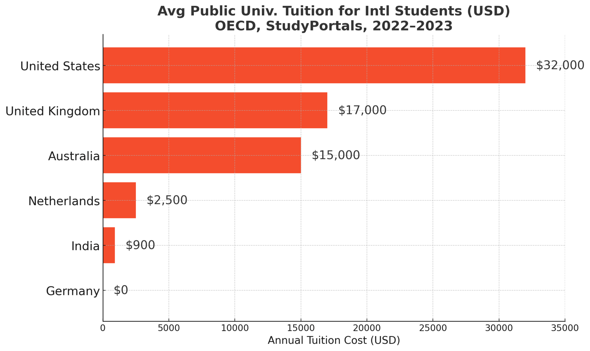 💸 U.S. tuition often exceeds $30,000/year, leading some families to consider foreign alternatives. A degree in Germany or the Netherlands could offer the same prestige at a third of the cost—or less.