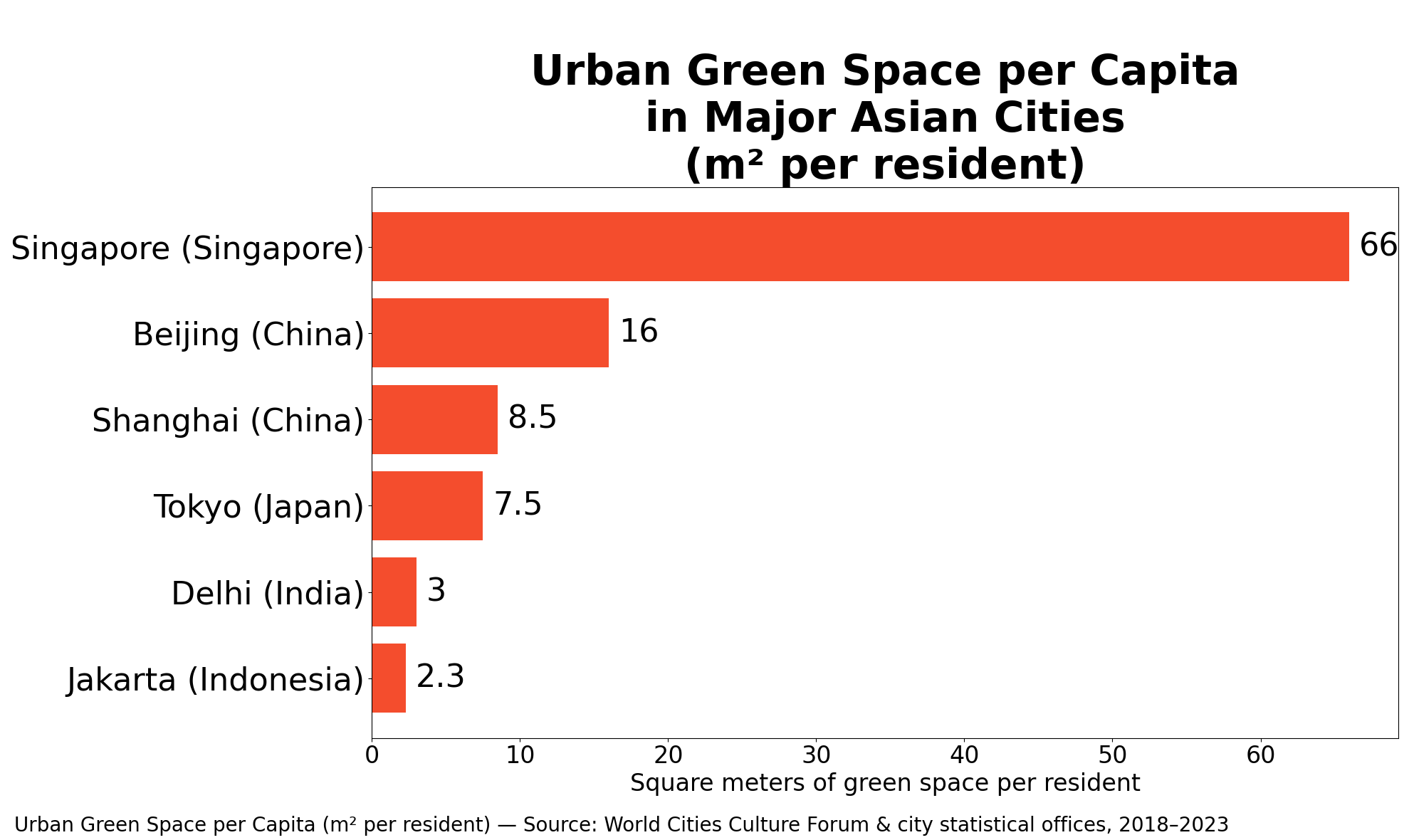 Putting It Into Perspective: In many Asian megacities, green space per resident has fallen below 10 square meters per person, far below the World Health Organization’s recommended minimum of 9–15 m². In the densest districts, it can drop to just 2–3 m².