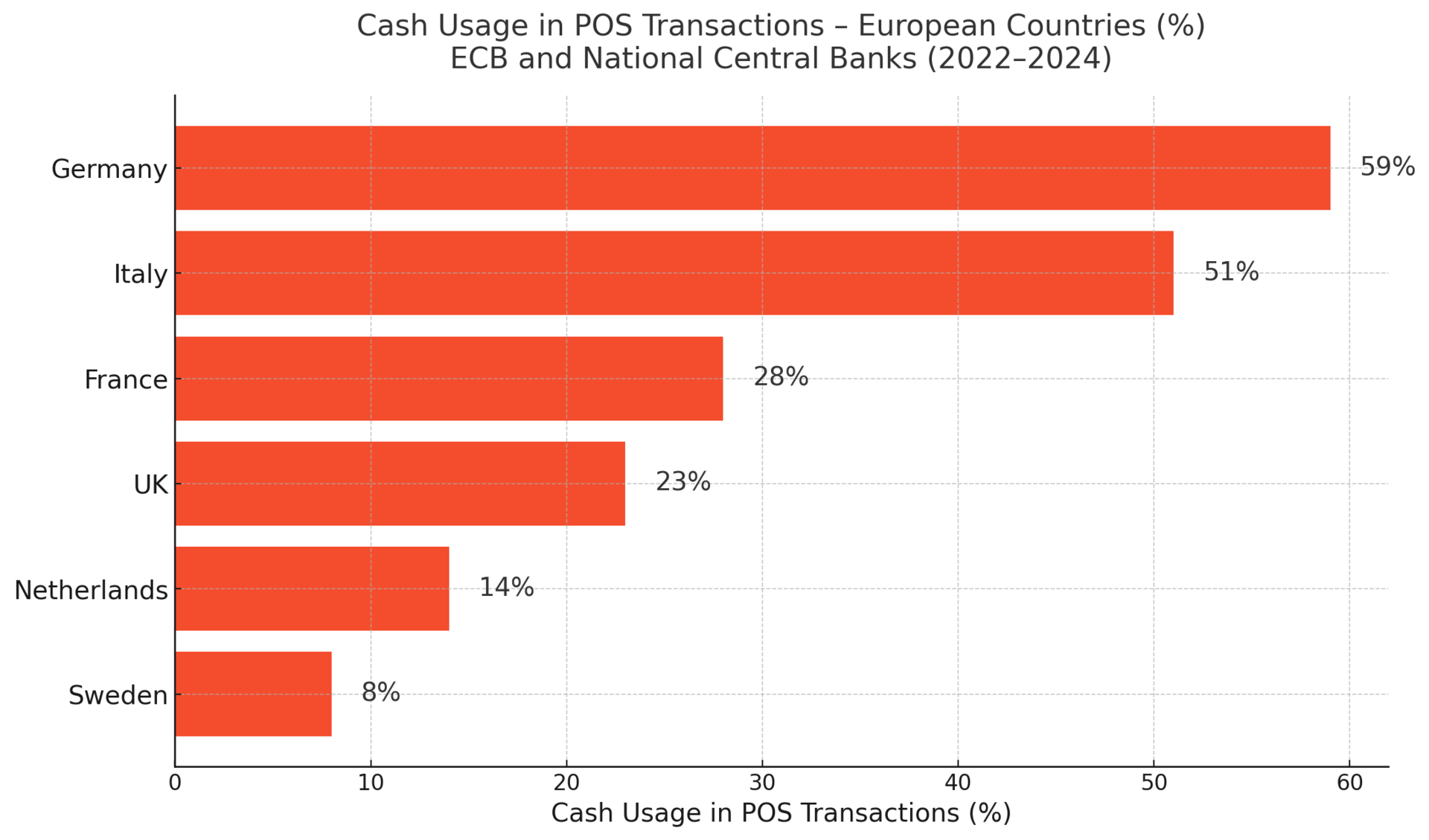 Germany is modern, affluent—and surprisingly analog when it comes to money. About 59% of all payments are still made in cash. Privacy, autonomy, and mistrust of centralized financial surveillance drive this preference.